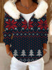 Dámské klasické vánoční stromeček tisk kožešinový obojek bunda
