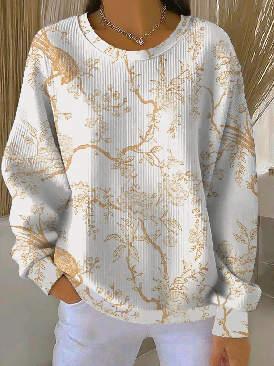 Dámské klasické zlaté květinové & ptačí tisk mikina