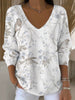 Dámské klidné ptačí a květinové vneck svetr