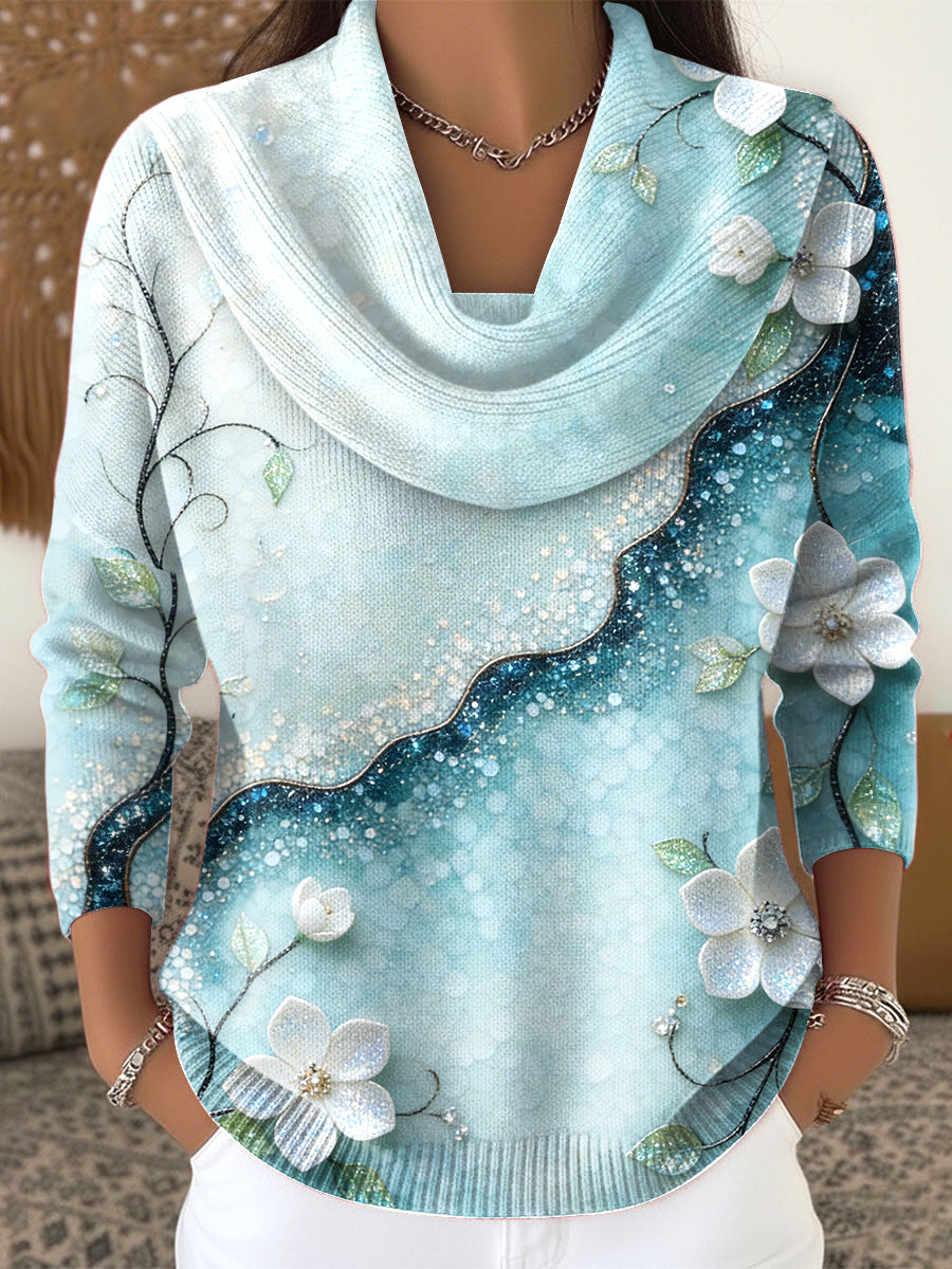 Dámské květinové třpytky tisk modrý gradient casual top