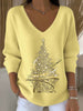 Dámské lesklé vánoční stromeček tisk vkrk svetr