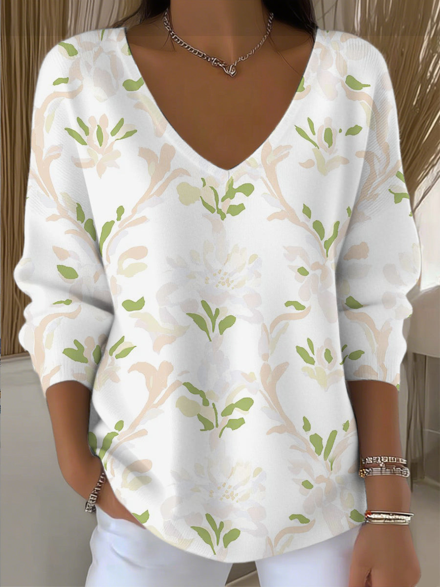 Dámské měkké béžové květinové tisk vkrk svetr