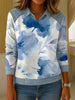 Dámské modré akvarel kvetinové džínsové patchwork sweatshirt