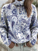 Dámské modré paisley módní roletý svetr