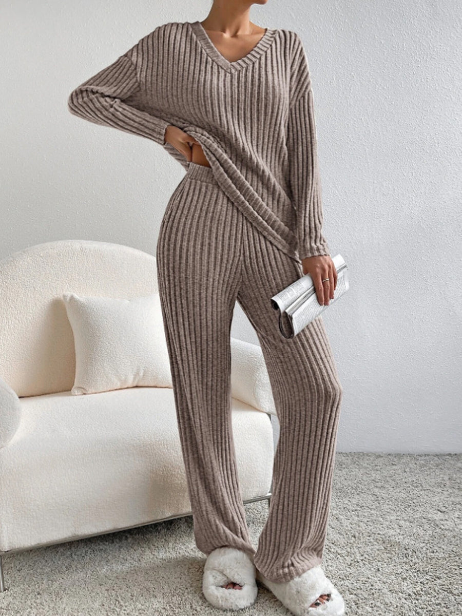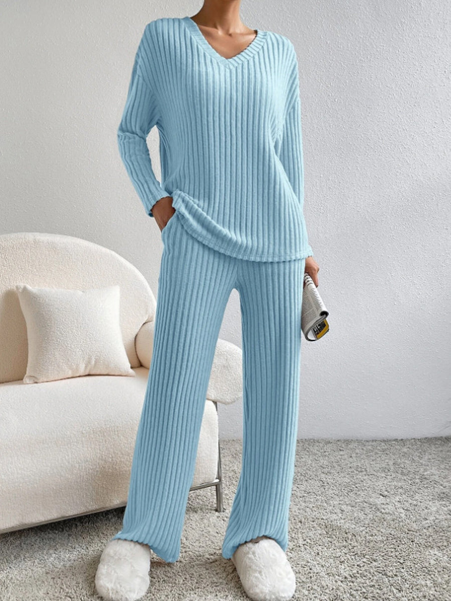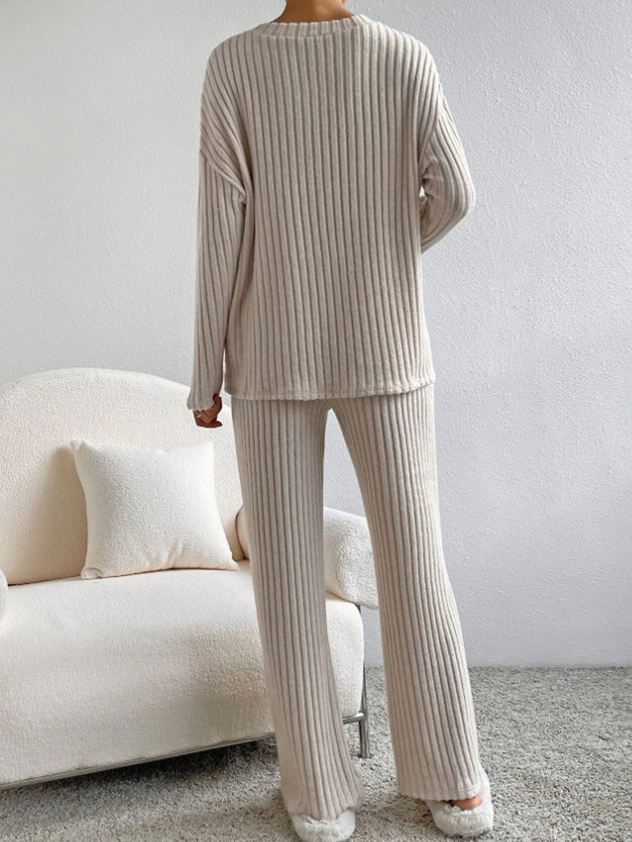 Dámské módy vkrku rebrované pletené rovnénohou kalhoty sbalené vkrku