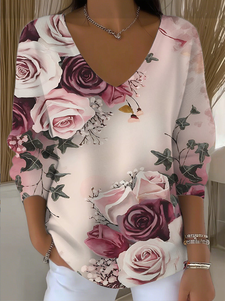 Dámské nádherné růžové tisk růžové vkrk top