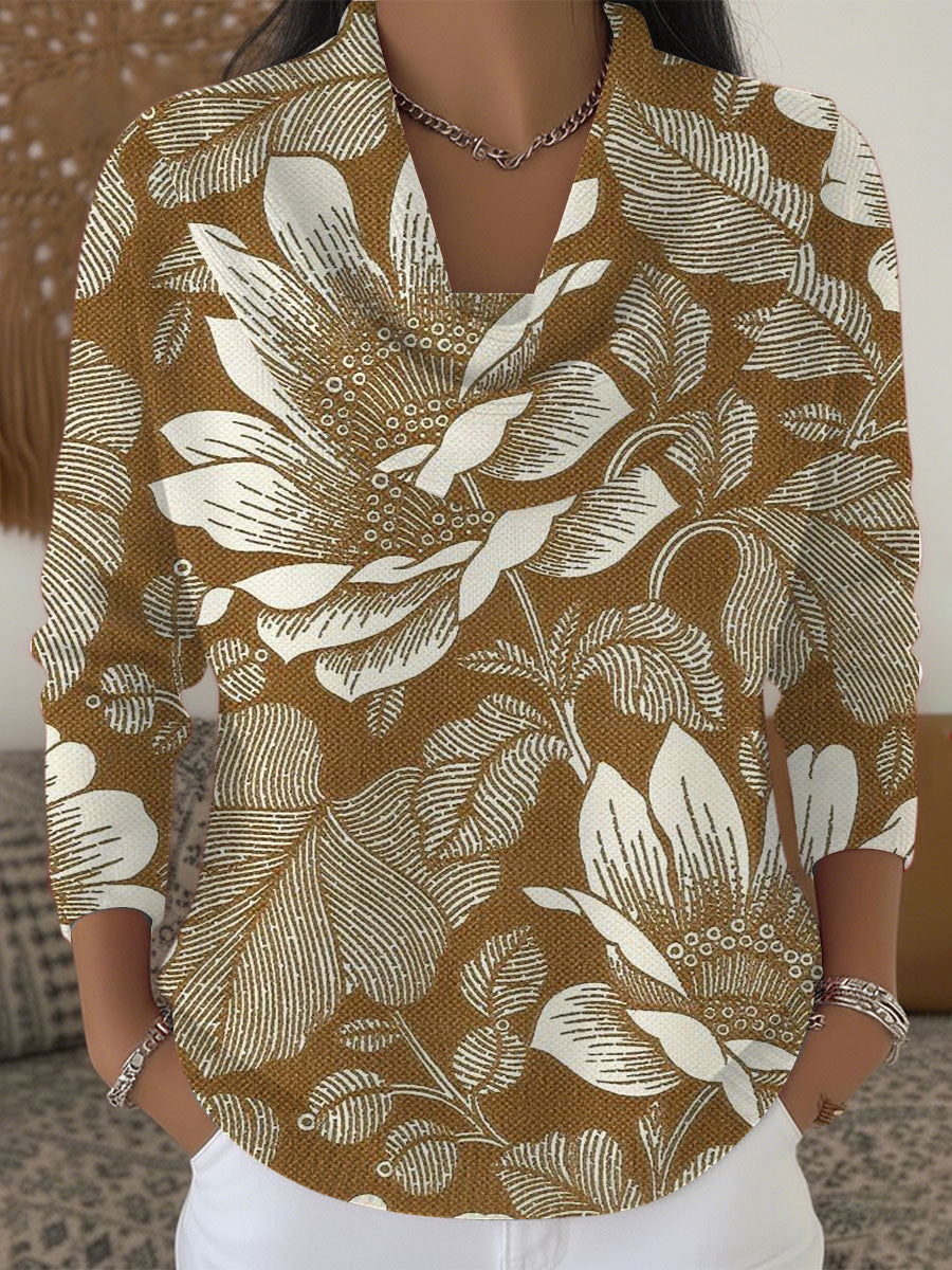 Dámské odvážné hnědé květinové otisky krabice krku svetr