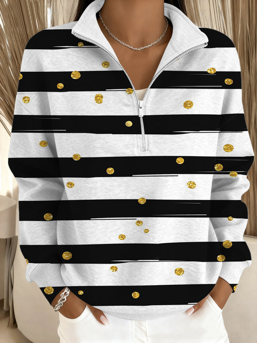 Dámské okouzlující černobílá pružka a zlatá tečka stojanová mikina