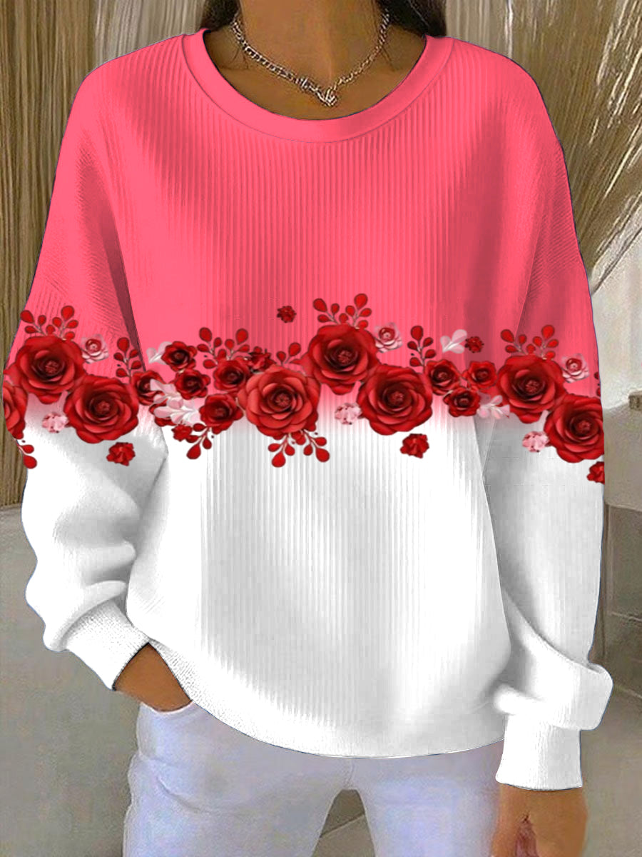 Dámské okouzlující červenobílá gradientní mikina s růžovou tištěnou