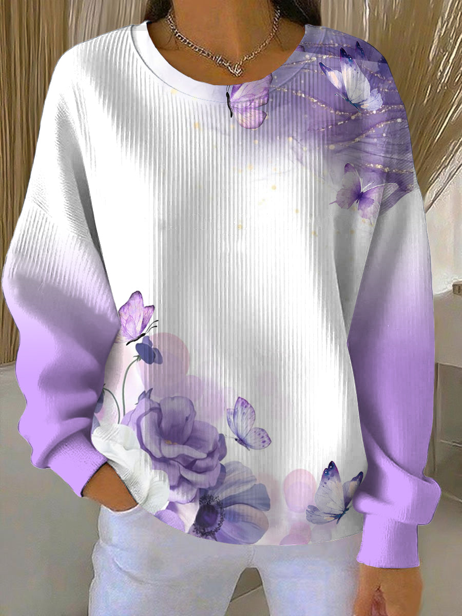 Dámské okouzlující fialová květinová a motýlka mikina