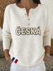 Dámské okouzlující krém český text fuzzyemblem henley svetr