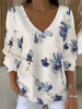 Dámské okouzlující modrý abstraktní květinový svetr s v krkem