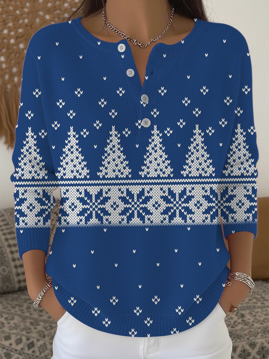 Dámské okouzlující modrý vánoční stromek henley svetr
