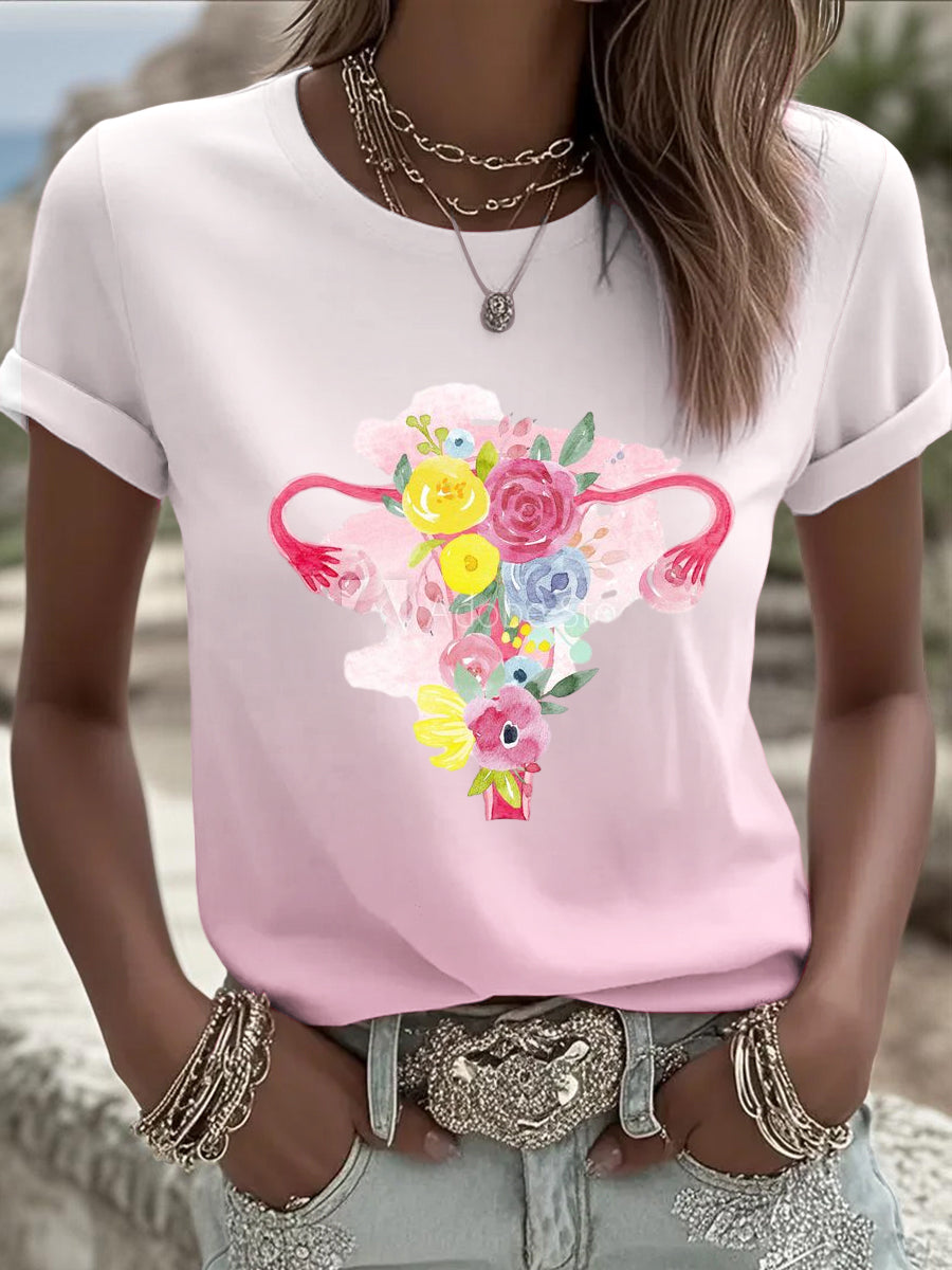 Dámské okouzlující růžovébílé gradientní ttričko s vibrant květinové dělohy otisky