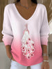 Dámské okouzlující růžový gradient vneck sweatshirt s pávovým tištěm