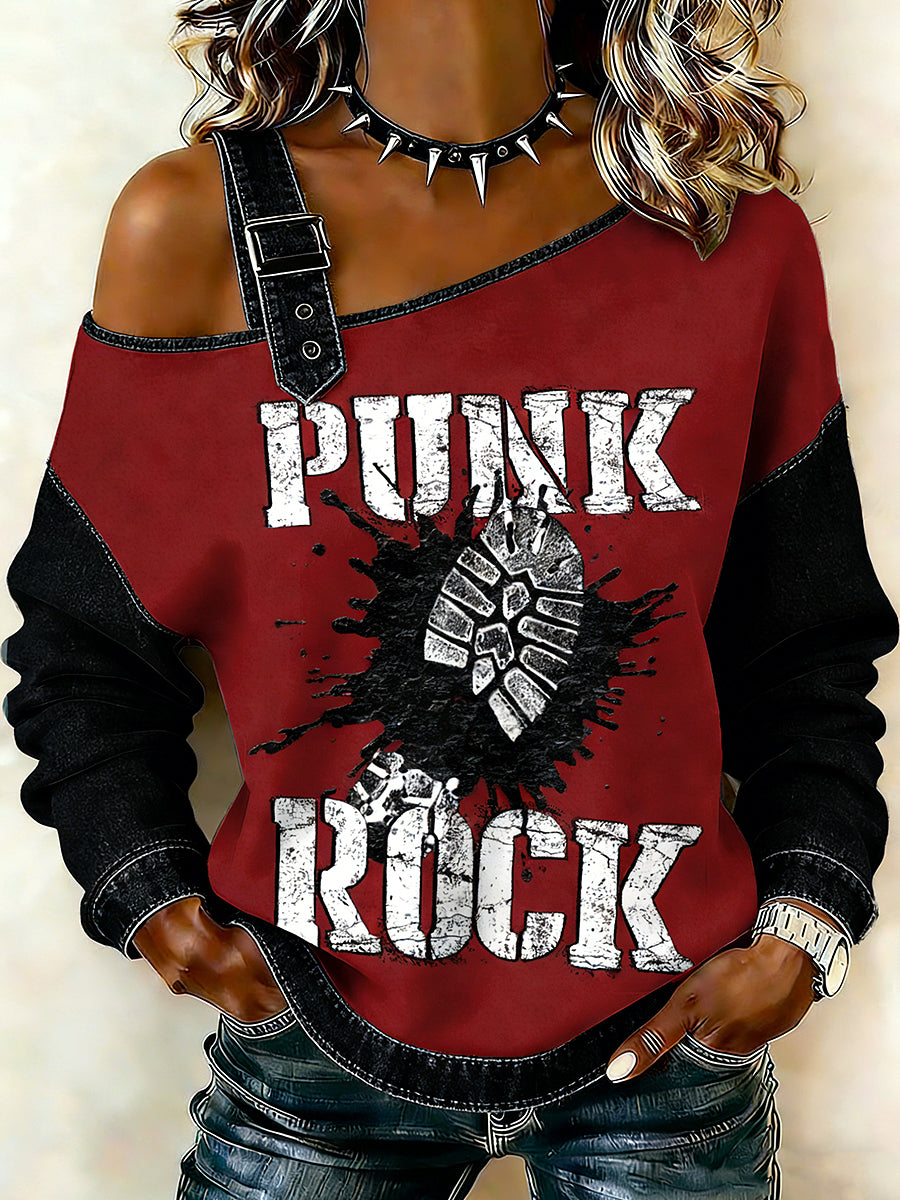 Dámské punky vytištěné jeden ramenní suspender příležitostný svetr
