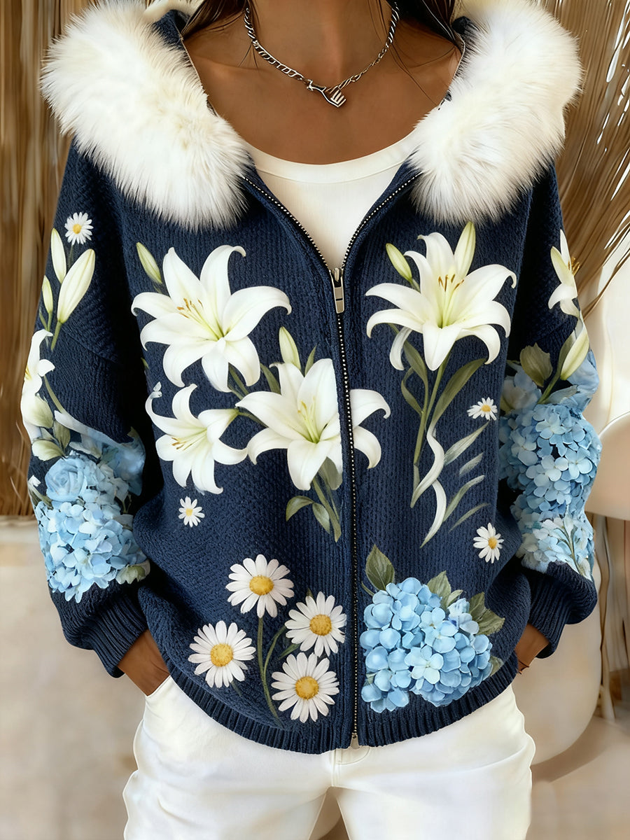 Dámské retro květinové umění pohodlné plísňové vesty s kapucinou