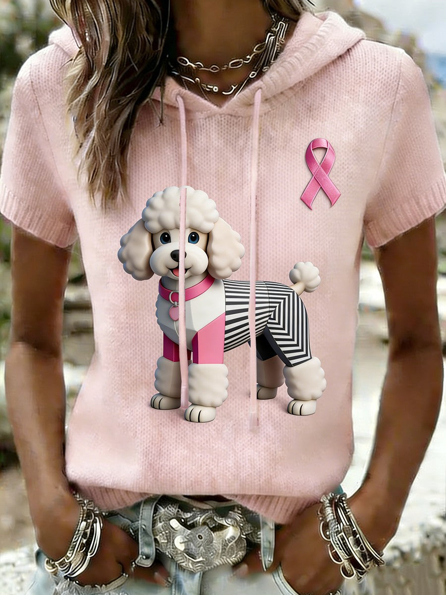 Dámské retro roztomilý pes rakoviny prsu informovanost o příležitostné košile s kapucinou