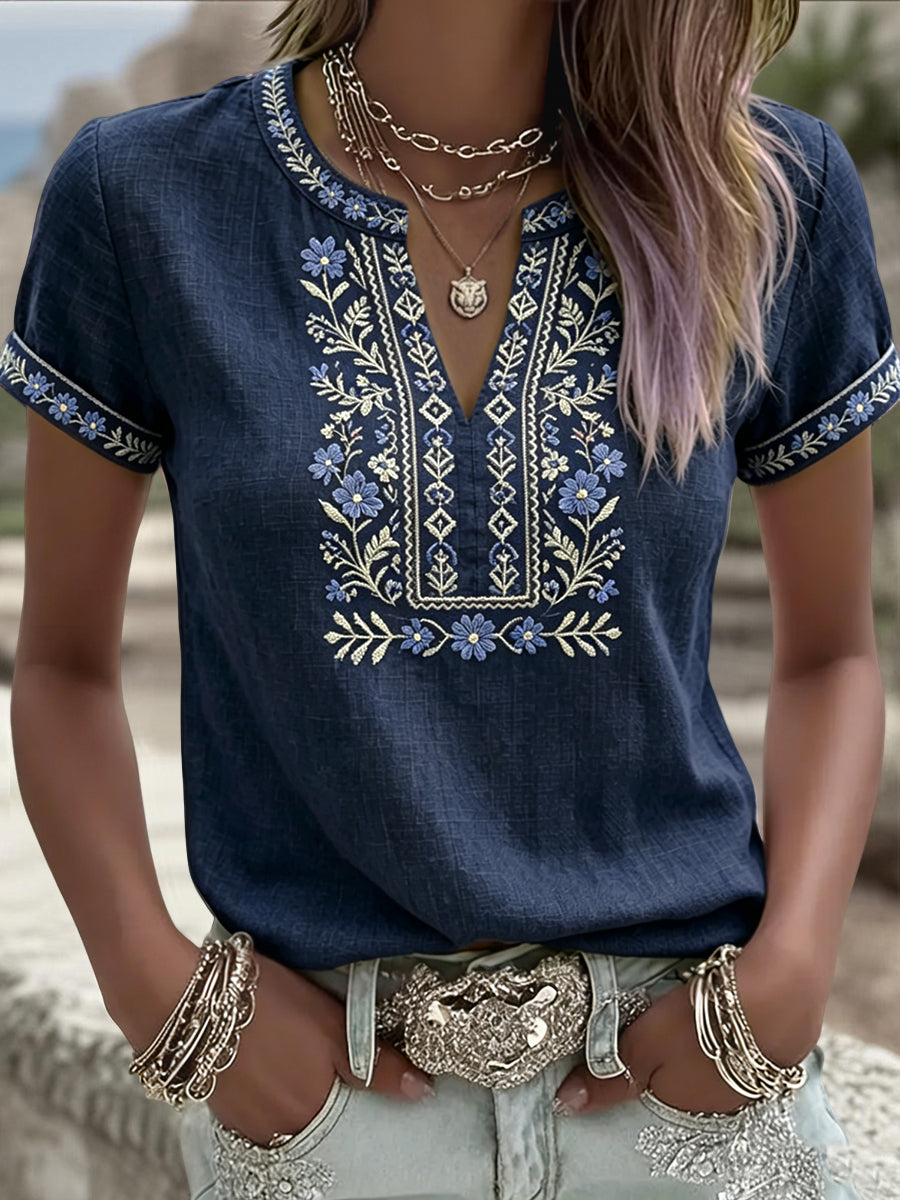 Dámské retro švédské letní etnické květinové umění vneck tshirt