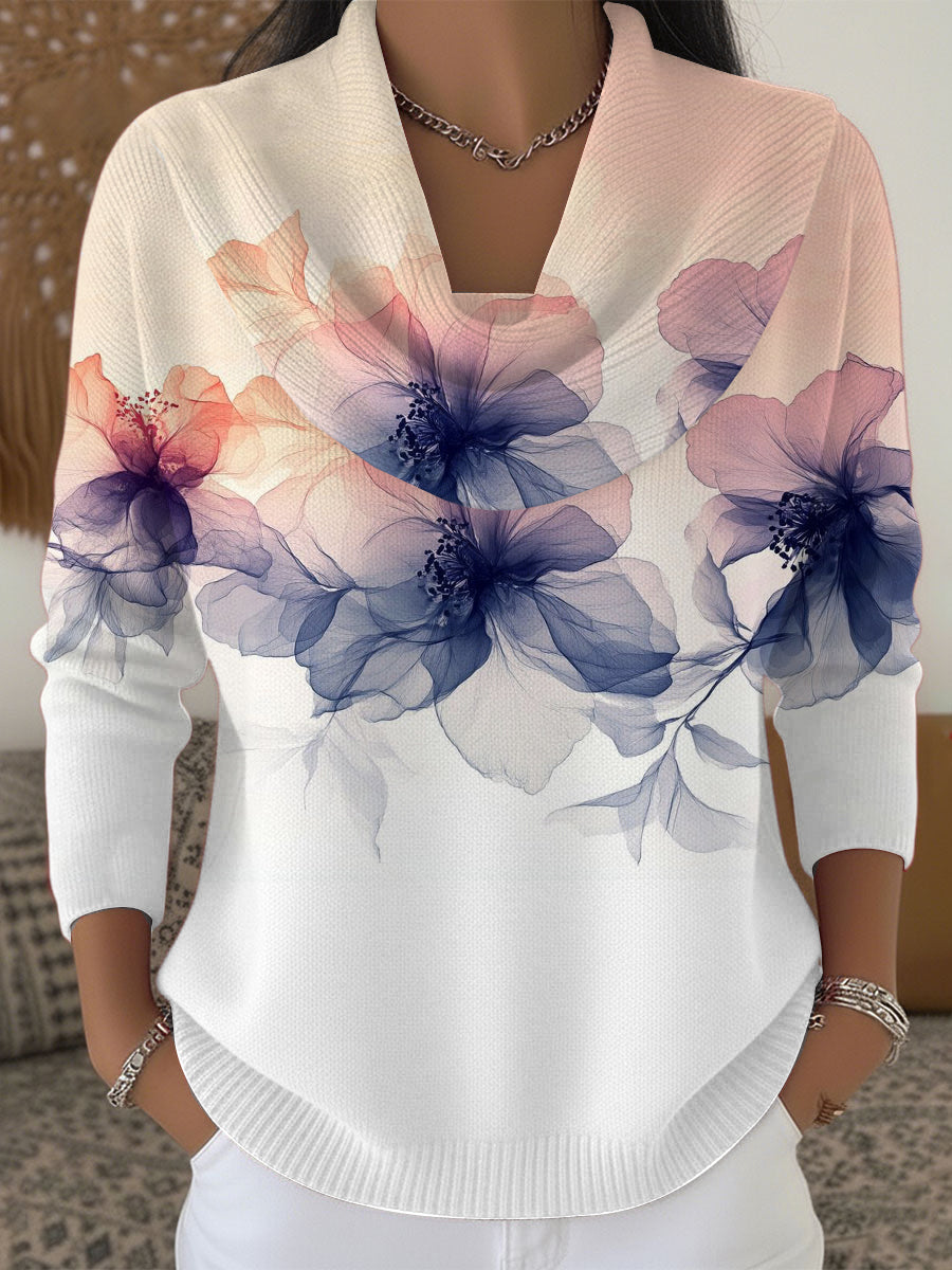 Dámské romantické barevné květinové tisk krabice krku svetr