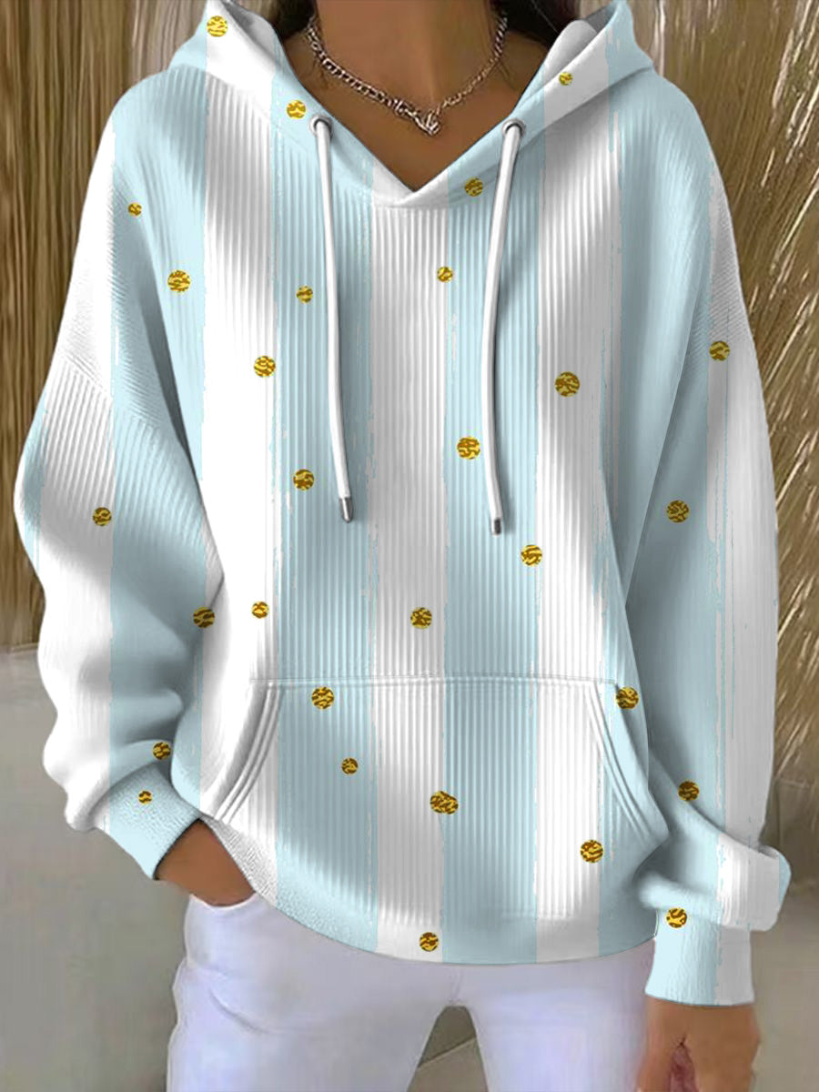 Dámské roztomilá zlatá tečka pruhovaná světle modrá mikina