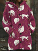 Dámské roztomilé kočky & řetězec tisk s kapucinou dlouhý kabát