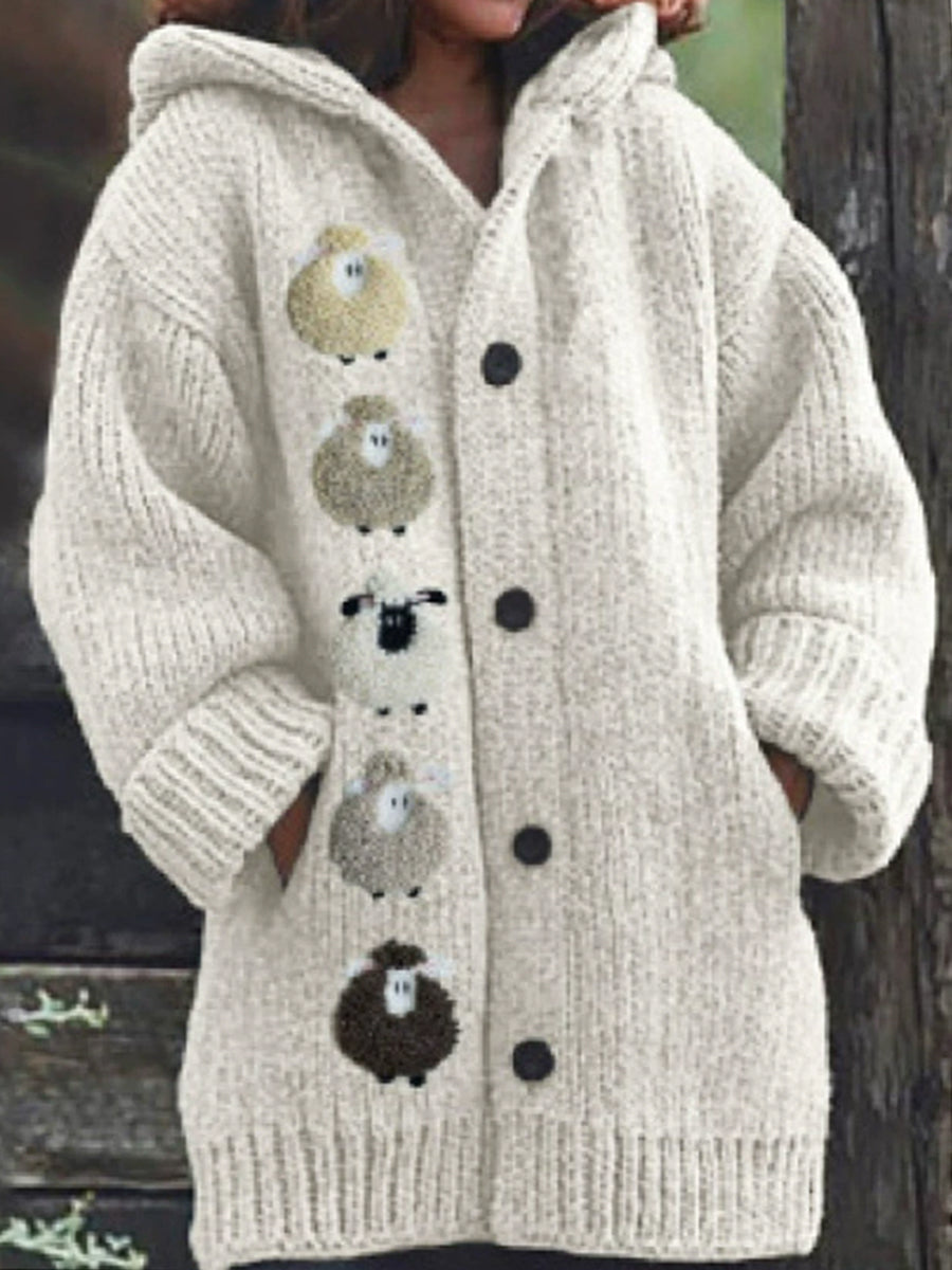 Dámské roztomilé ovce tisk s kapucnou vestu