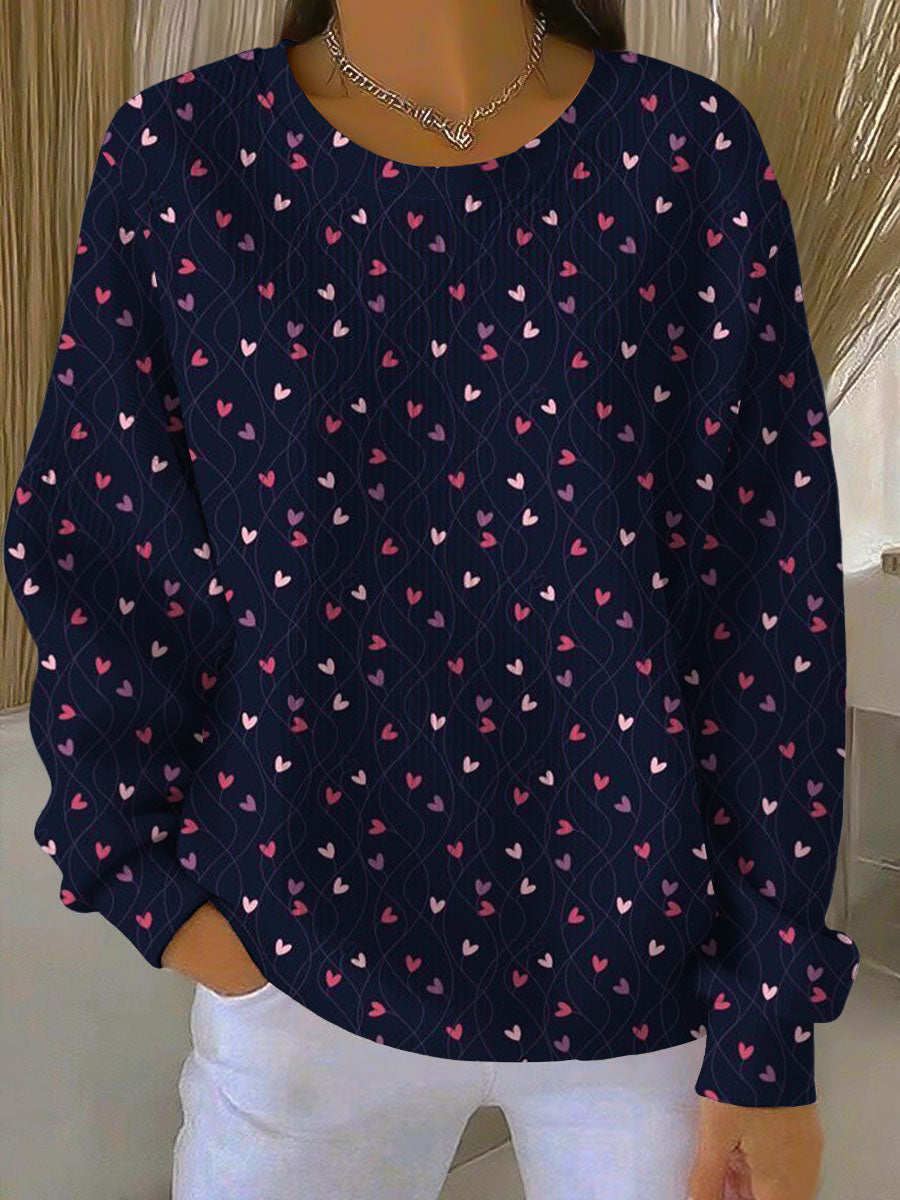 Dámské roztomilé srdečně tištěné tmavě modré mikiny