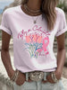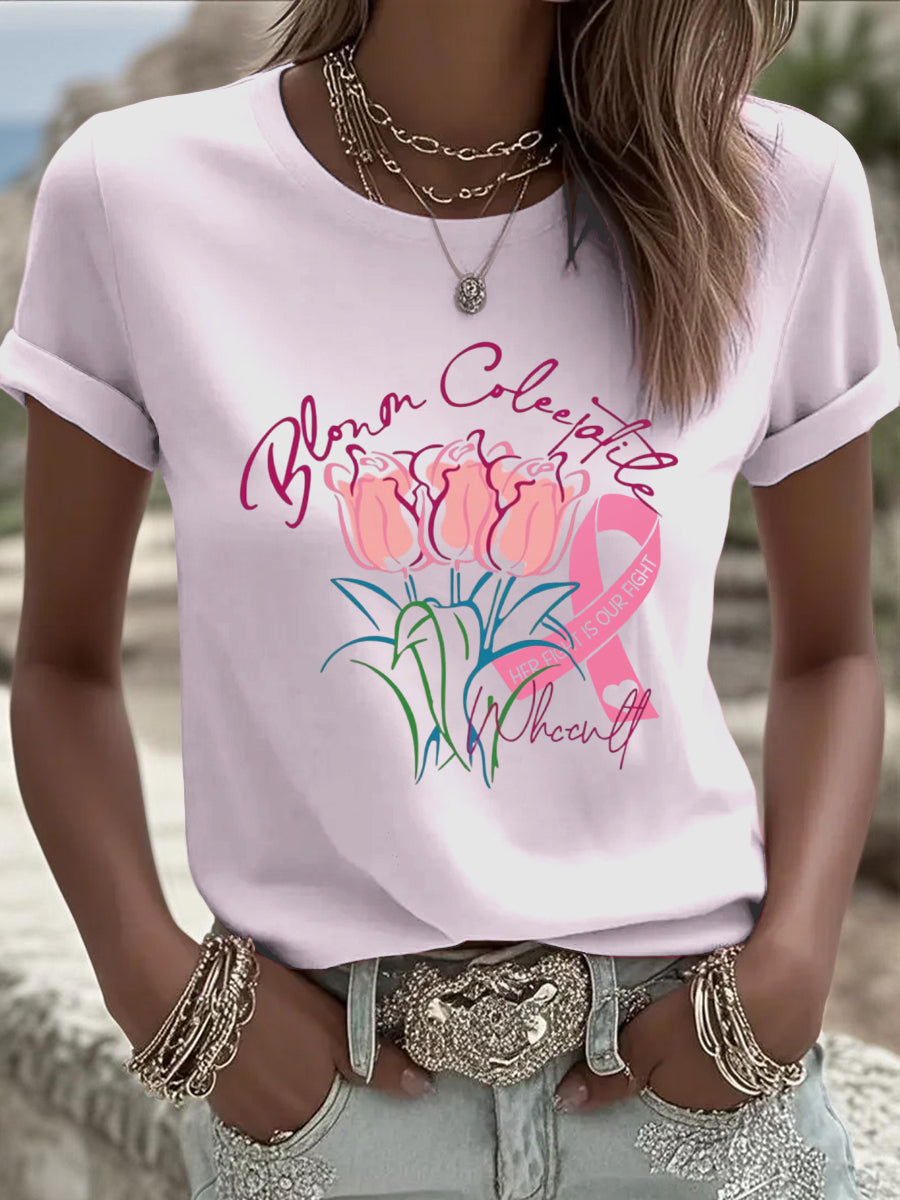 Dámské růže a stuha tištěné světle růžové kolo krku krátký rukáv