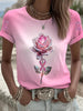 Dámské růže růže stuha rhinestone příležitostné tričko