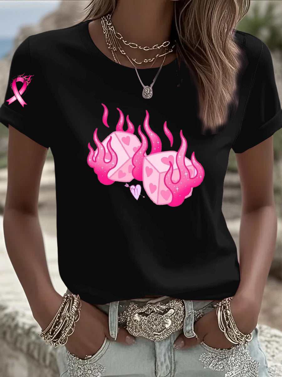 Dámské růžové plameny kostky a stuha černá neformální krátké rukávy košile