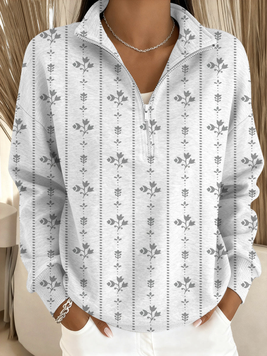 Dámské šedé pruhované květinové tričko s golierovým stojanem