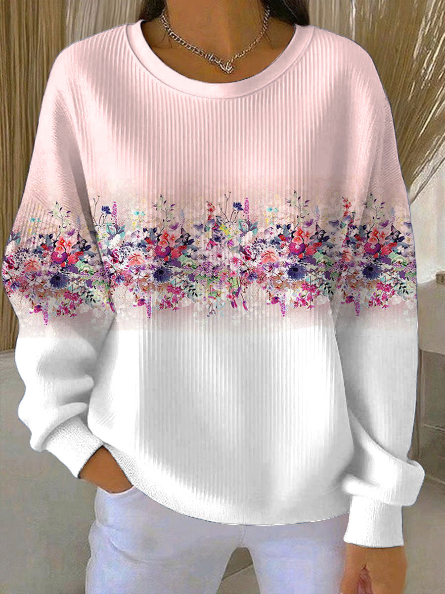 Dámské sladké růžovébílé květinové pruhované mikiny