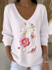 Dámské sladké světle růžové vneck svetr s příjemnou růžovou a bílou květinovou výšivkou