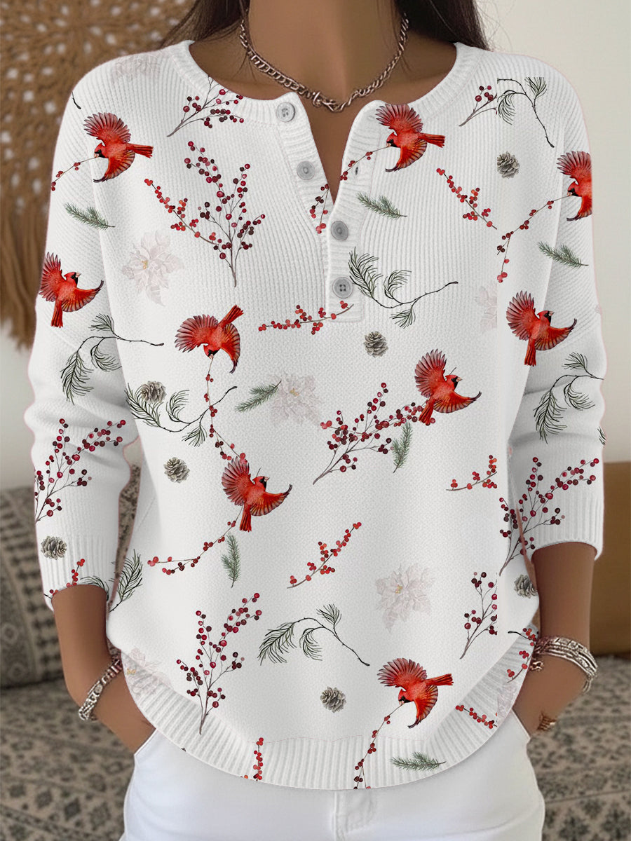Dámské slavnostní červené pták henley svetr