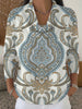 Dámské složité modré & béžové paisley tištěné kapračky krku svetr