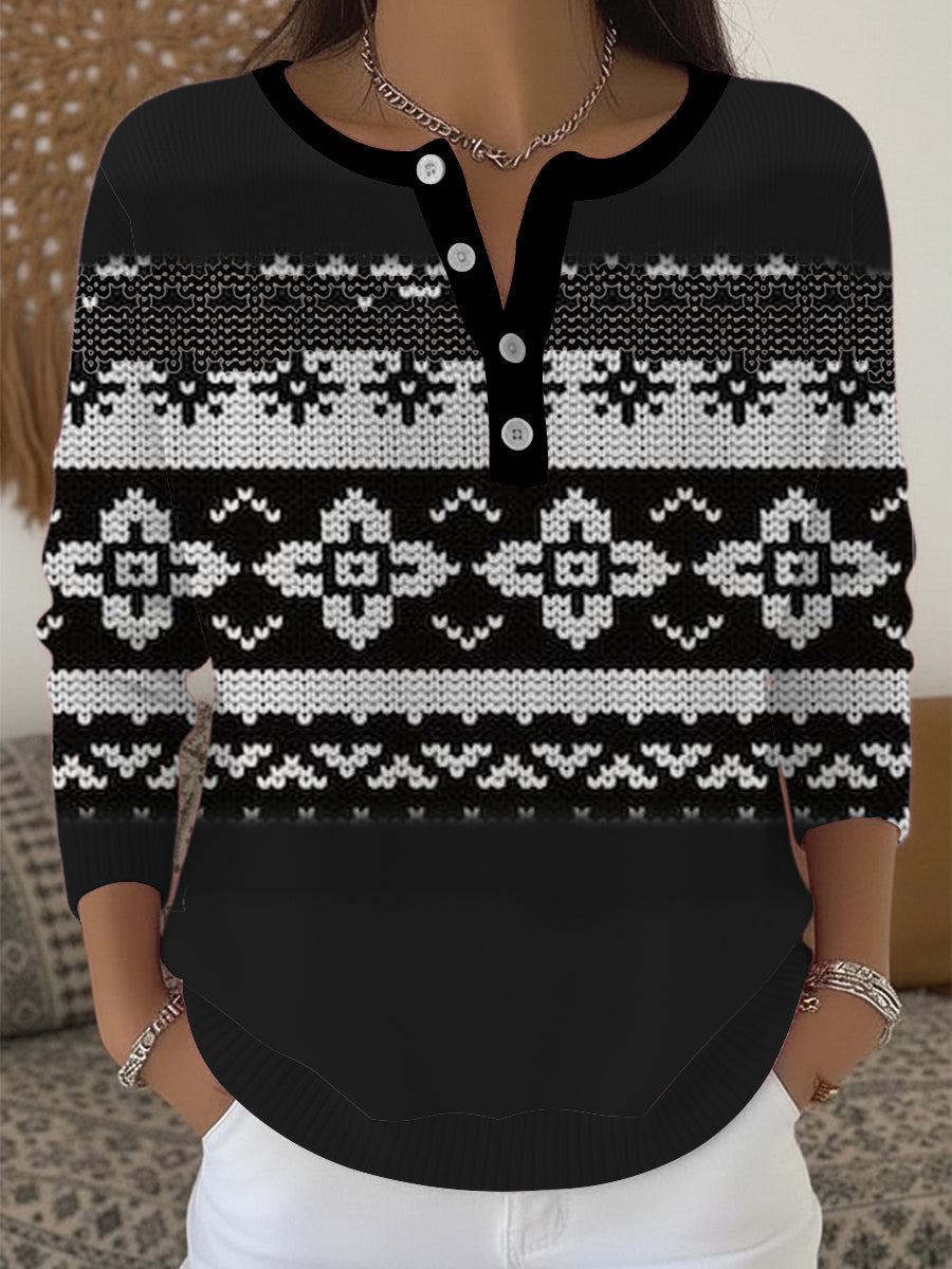 Dámské stylové černé bílé vzor henley svetr