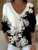 Dámské stylové černobílé květinové tisk vkrk svetr
