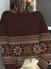 Dámské stylové hnědé sněhové vločky mock neck svetr