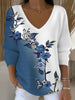 Dámské stylové modrobílé gradient vneck svetr s elegantní modré květinové otisky