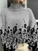 Dámské stylové šedé černé květinové gradient mock neck svetr