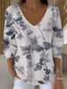Dámské stylové šedé květinové vneck svetr