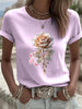 Dámské světlé růže růže a stuha rakoviny prsu téma příležitostné kolo krku krátký rukáv