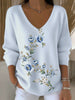 Dámské temperamentní květinové výšivky modrý svetr v krku