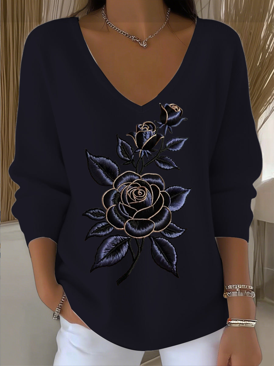 Dámské tmavě fialové vyšívané růže vkrk svetr