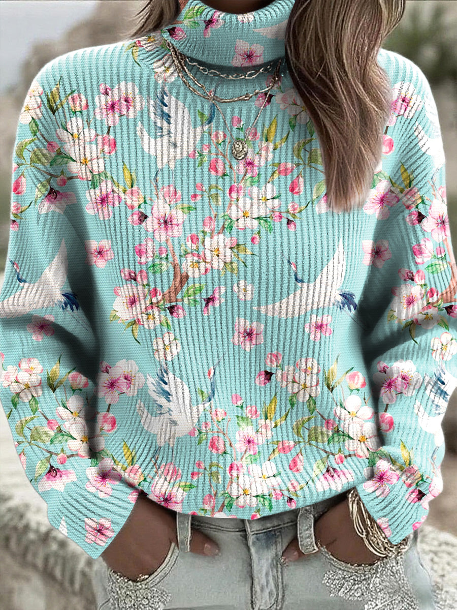 Dámské tradiční květinové a ptačí vzor kolečka jumper