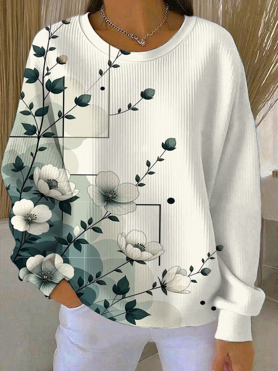 Dámské umělecké květinové & geometrické tisk bílá mikina