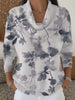 Dámské umělecké šedé listy tisk krabice krku svetr