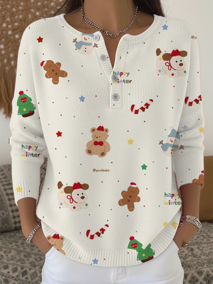 Dámské vánoce barevné zimní dovolená tisk henley svetr