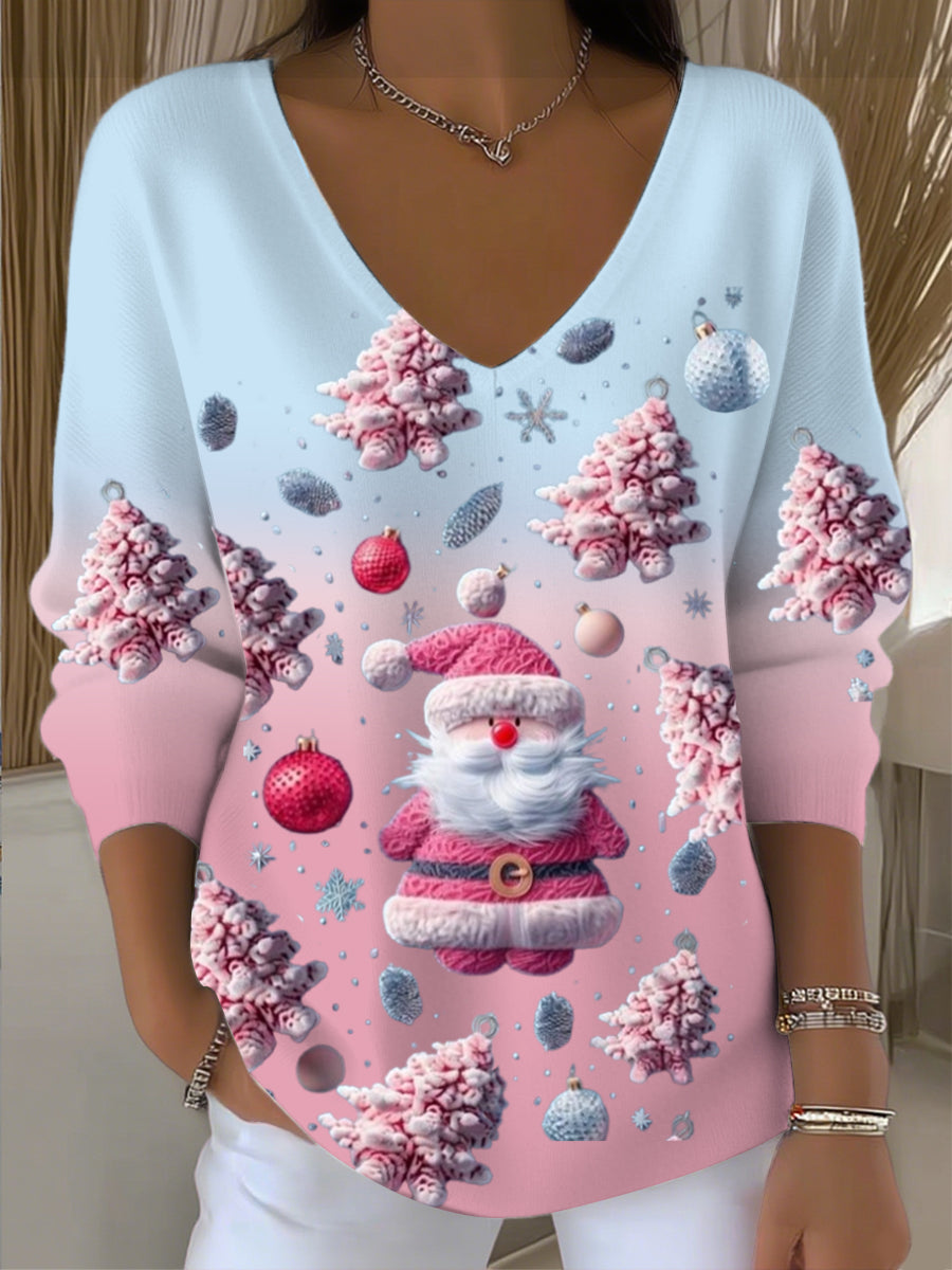 Dámské vánoce roztomilé růžové santa & strom vkrk svetr